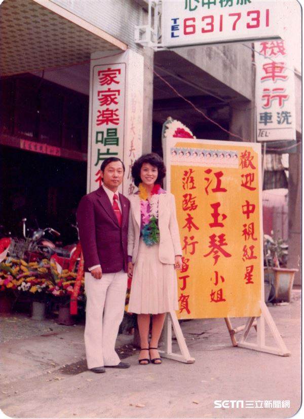 照片中,「江玉琴小姐」身穿米白色西裝,燙著一頭時髦捲髮,脖子上戴著花圈,一旁海報上寫著:「歡迎中視紅星江玉琴小姐!」各位認得出來她是誰嗎?時隔40年,很難將她與現今的台語「情歌天后」聯想在一起。沒錯!她就是龍千玉!