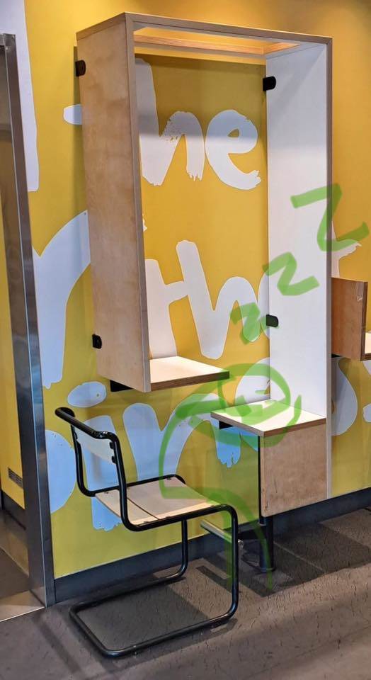 原PO在臉書「路上觀察學院」貼出一張照片,照片中可見,在該間麥當勞的某個角落出現奇特的內用座位,地上擺著椅子,在牆邊則出現木製空間可以擺放食物,然而在椅子上方卻又卡著木板,無論是成人還是孩童,完全沒辦法塞進椅子上那狹窄的空間,這也讓原PO不禁納悶,「這麼潮的桌椅設計!我不知道怎麼坐?」。