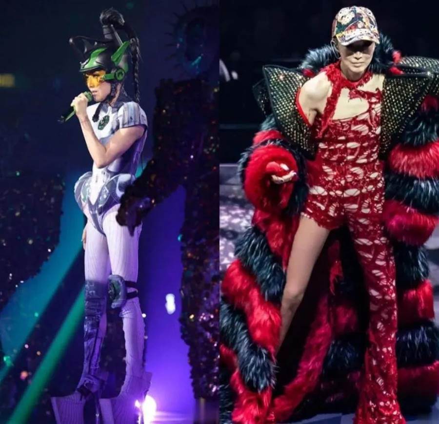 演唱會上,她演唱了很多首經典歌曲,但她的各種千奇百怪的舞台造型,反而成為焦點。