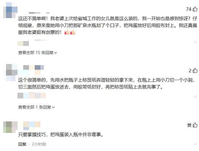 然而,對于那瓶裝雞蛋的巧妙方法,盡管揭開了謎底,依然讓人感慨萬千——每一個細節背后,都有無盡的智慧,令人震撼。而或許,這正是生活最美好的地方。