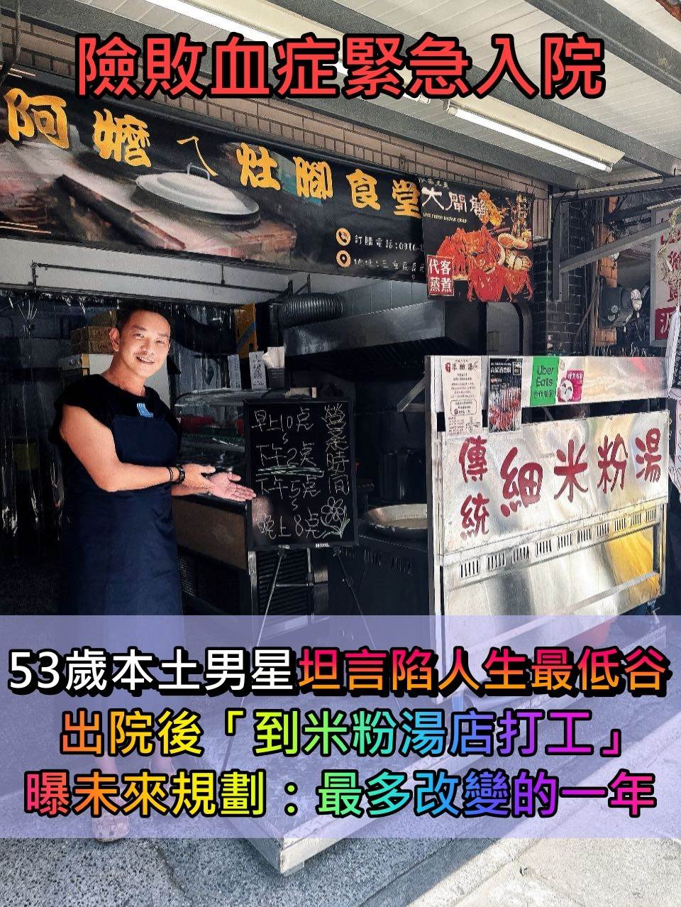 53歲本土男星江俊翰經常飾演反派,精湛演技令觀眾看了恨得牙癢癢,《夜市人生》、《黃金歲月》、《愛的榮耀》等八點檔皆能看到他的身影。先前經歷一場突如其來的健康危機,原本只是簡單的擠膿包,沒想到竟演變成蜂窩性組織炎,差點釀成敗血癥,緊急住院開刀治療,讓他在醫院住了整整兩週,也讓他開始重新審視人生方向。近日他更決定去米粉湯店打工,並透露最新規劃。