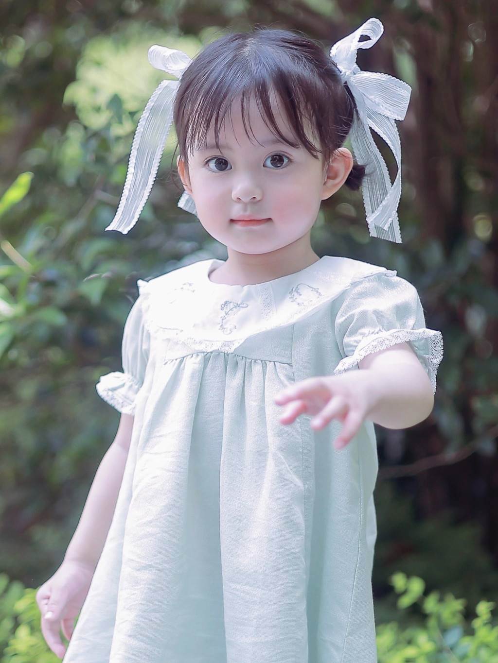 女兒的獨照也把網友們給萌了一把、既羨慕又紛紛直誇:「女版爸爸太好看了」、「果然想生漂亮女兒,爸爸一定要選好看的」、「韓國的一個電視節目說過了。想生個漂亮女兒全靠父親的基因,爸爸帥,那基本等于預約了一個美人」、「真的...好震撼的大眼睛」。