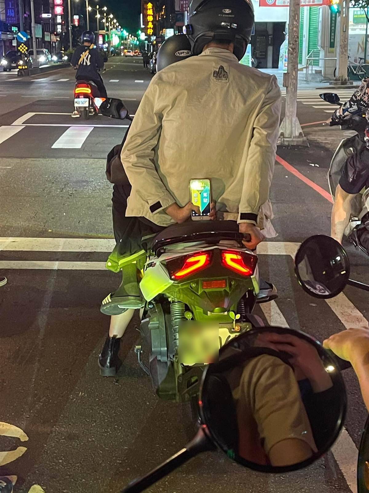 根據中時新聞網報導,最近有網友在臉書「爆廢公社」上分享一張照片,畫面中可以看到一名坐在機車後座上的男子,反手將手機螢幕對著後面的用路人,並在螢幕上以黃色和綠色的醒目色塊寫上「新手駕駛」4個大字,似乎為了剛學會騎機車的女友示警後方的來車,整個暖男滿分的舉動讓原Po不禁大讚,「不得不說,這男的很讚,很替大家著想、很貼心」