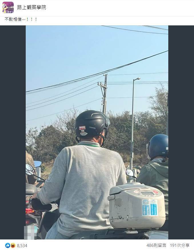 一位騎機車阿伯的背影在臉書社團《路上觀察學院》造成轟動,並不是阿伯擁有天菜背?的技能,亮點在于他機車後方的法寶,置物箱還剛好呼應阿伯當天穿搭的灰色系。有覺得這個置物箱很眼熟嗎?你沒看錯!它就是家裡廚房用來煮飯的電鍋本鍋啦!