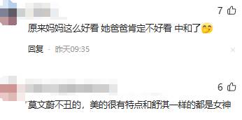 一位網友在評論中寫道:「莫文蔚眼窩深,顴骨突出,臉頰瘦,這些特征看起來更像是遺傳自父親。而她媽媽則有著典型的中國美人特征,眼窩淺,鵝蛋臉,顴骨平,看起來就像是最傳統的美人。」