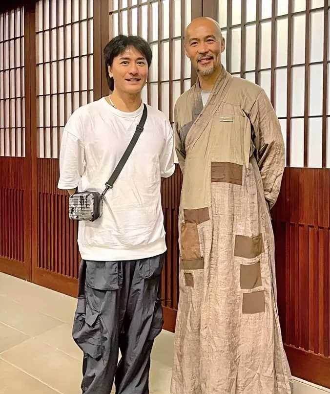 在寺廟中,林偉亮的形象與其曾經的熒屏形象截然不同。