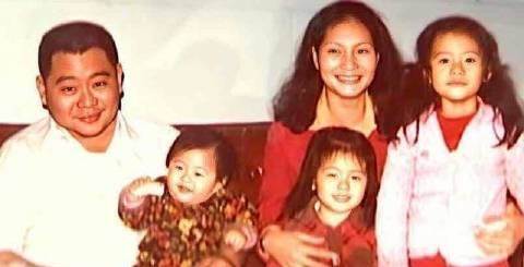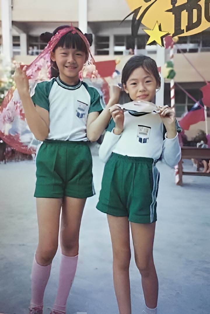 稍微長大一點的大S留著劉海,當時就已經很時尚了啊!不過小時候的大S皮膚黝黑,眼睛小,真看不出美人模樣。