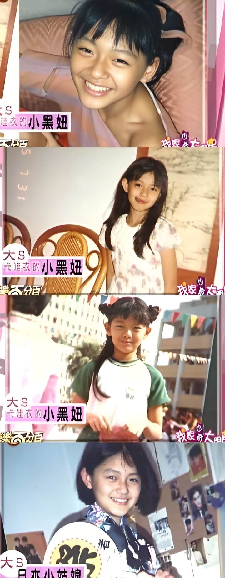 可以看出她從小皮膚就比較黑,其實剛出道時她依舊是個黑美人,但是接下去大S是鐵了心要變白變美,在護膚方面頗有研究,