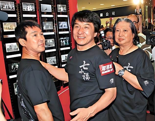 照片中,年輕的洪金寶身邊站著兩位少年,他們分別是元彪和成龍。那個時候的洪金寶面露堅毅,已經有了帶頭大師兄風范,而元彪和成龍則是尚顯稚嫩,三人已經開始在功夫電影界摸爬滾打。
