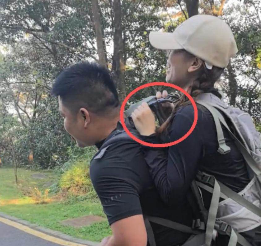 有網友慢放視訊發現,男子在下山途中做了個「往上抖人」的動作。