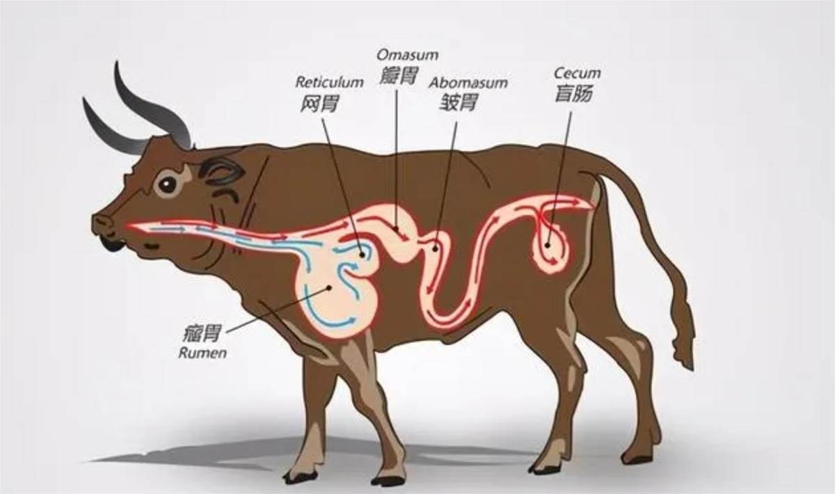 牛身體內一共存在四個胃,只要在通過瘤胃的消化之后,才能抵達其他胃,攝入營養物質。