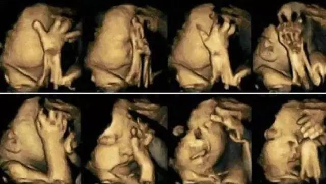 後來,通過超音波檢查,女子發現寶寶似乎個性非常活潑,在肚子裡不停翻身,一下子摸嘴巴,一下子又抓抓耳朵,甚至會摀著臉就像在哭泣一樣,逗得她開心直呼:「孩子會做鬼臉呢!將來一定很聰明!」