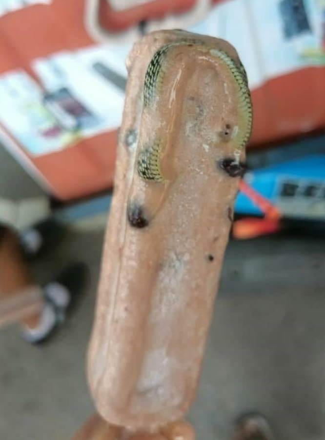 先前台灣一對情侶吃芋頭冰棒時,驚見裡頭居然包著一隻巨大蟑螂,業者事後道歉並預防性下架所有在通路販售的該商品。不過食物裡出現蟑螂並不稀奇,畢竟蟑螂喜歡的食物和人類很像,但食物裡有「蛇」合理嗎?