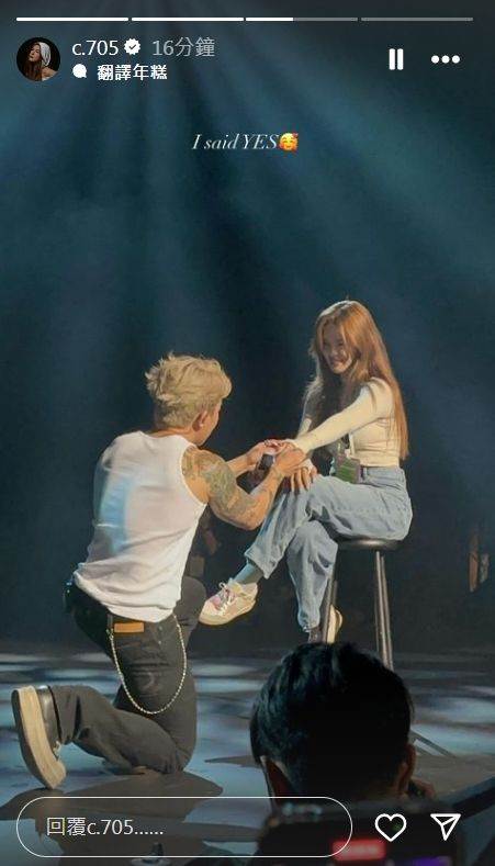 而Christy在她的IG限時動態中也更新了這一刻的照片,并回應道:「我答應了。」