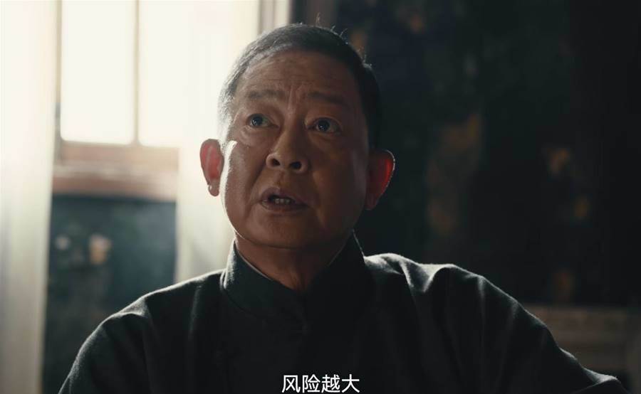 出場的十幾秒里,鄭蘭亭氣場強大,一句,「風險越大,利益越大」,充分彰顯了其亡命徒的兇惡形象。