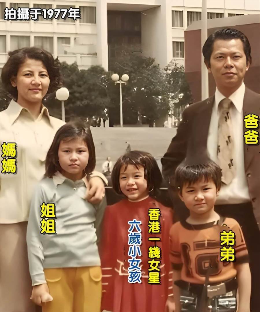怎麼也想不到,原來這是香港一線女星小時候的樣子。這張照片拍攝于1977年,鏡頭中的小女孩戴著鮮艷的頭花,穿著時髦的洋裝,臉上掛著純真的微笑,透露出無限的天真爛漫。看得出來,她當時的生活條件十分不錯。77年能有這樣的穿著打扮,顯然是出自有錢人家的小公主,然而她六歲的時候根本沒想到自己以后會是眾人矚目的一線明星吧?