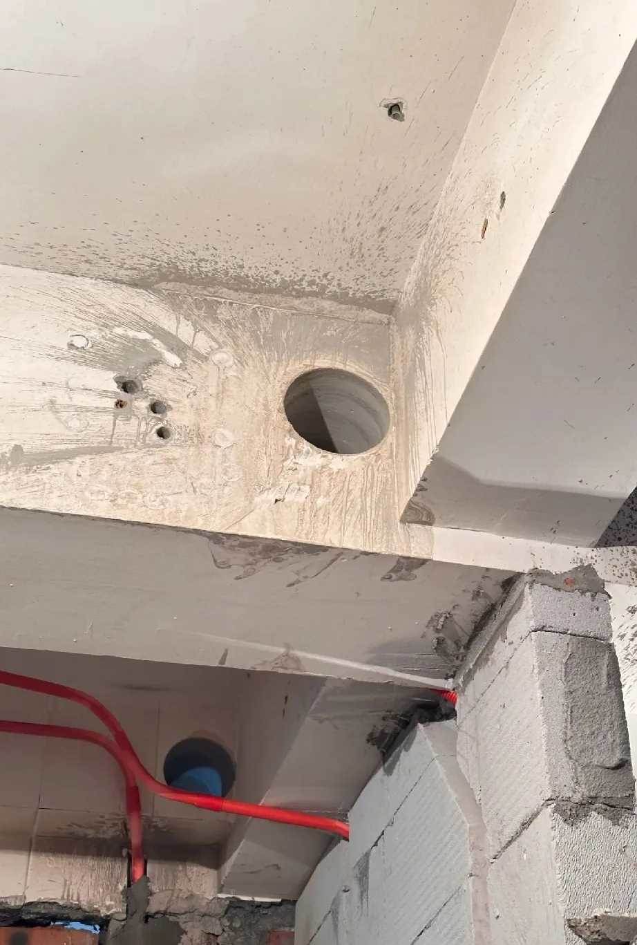 還有不少網友說:「一般開個小洞,避開鋼筋,穿水管電線沒事,這麼大的就危險了」,「橫梁開洞影響受力平衡,易引發安全隱患,必然危及樓體。 開孔位置是在次梁的位置,影響較大。」,「很多人認為的沒問題,指的是正常情況下,不會塌。抗自然災害,肯定就不行了,如果你在震區就趕快換房子吧。」。「開洞削弱橫梁承載能力,可能導致樓體變形,肯定危及樓體。