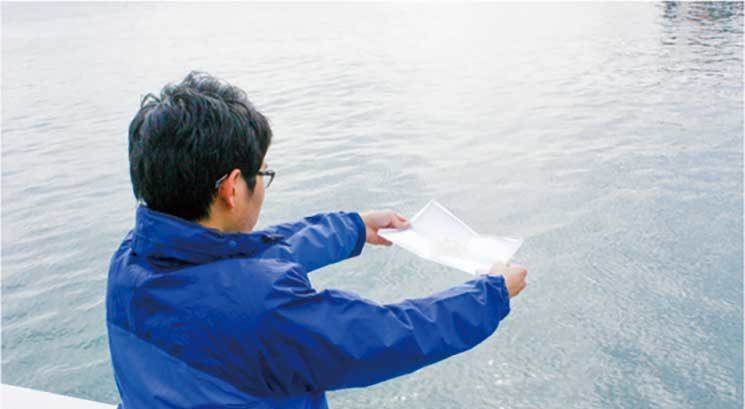 日本作家島田裕巳,同時也是NPO法人「葬送自由推進會」的會長,他分享自己遇過的海葬案例,這一家人開船出海後,將骨灰包在水溶性的紙內。