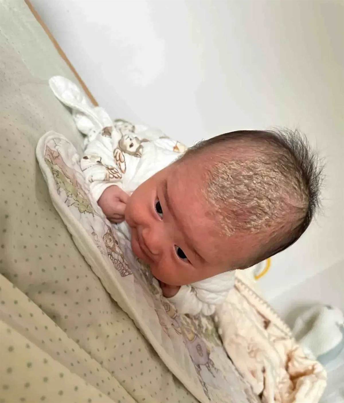 小美實在不忍心,和先生商量後決定幫寶寶清潔看看。沒想到一碰到那層皮屑,寶寶就哭得撕心裂肺,先生一看心疼,馬上喊停:「算了算了,我們再等等吧!」
