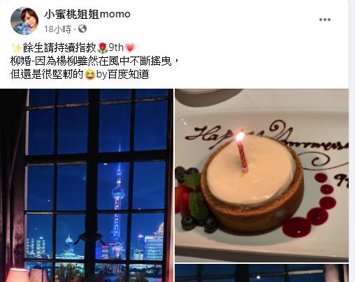 對于外界盛傳,李慎言因為欠下債務,導致家裡也待不住,甚至家產都可能不保,小蜜桃姐姐在2020年時就曾PO文,公開與老公慶祝結婚9周年的合照,感性地寫下:「柳婚,因為楊柳雖然在風中不斷搖曳,但還是很堅韌的!」照片中她跟老公甜蜜依偎在一起,開心的笑容和幸福浪漫的玫瑰花,用事實破除外界的謠言。