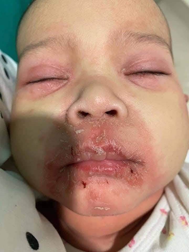 林太太下班回家,打開門的瞬間,整個人都僵住了。才剛滿三個月的寶寶嘴周紅腫潰爛,小臉蛋上有好幾處破皮,有些地方還滲著組織液。她衝到嬰兒床前,顫抖著手想碰又不敢碰。