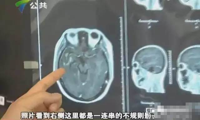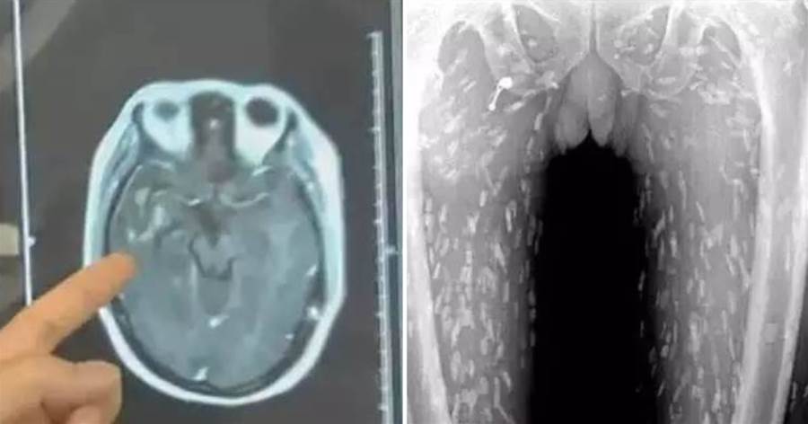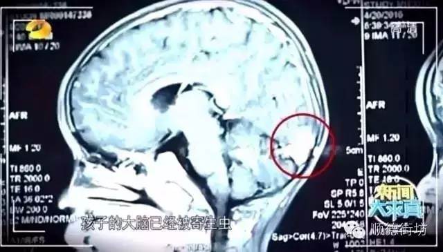 這個孩子也是經常吃不熟的食物,腦部被寄生蟲「啃」出一個洞▼