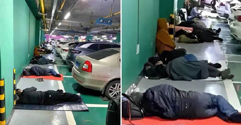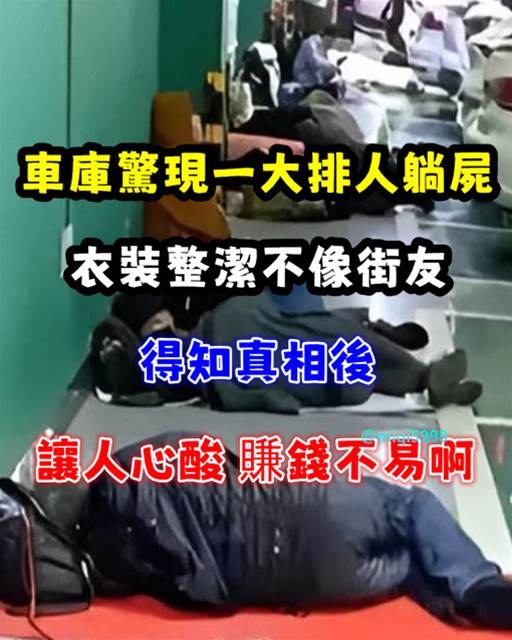 車庫驚現一大排人「躺屍」衣裝整潔不像街友,得知真相后讓人心酸:賺錢不易啊